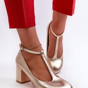 Czółenka damskie wykonane z eko skóry to idealne obuwie dla kobiet ceniących styl i wygodę. Stabilny obcas w postaci słupka. Z przodu delikatny paseczek, który dodaje im subtelności i uroku. Zapinane na regulowany pasek ze sprzączką, gwarantują precyzyjne dopasowanie do stopy. Noski zaokrąglone. Wkładka ze skóry naturalnej. Doskonałe na wiele okazji, od codziennych stylizacji po specjalne wydarzenia.