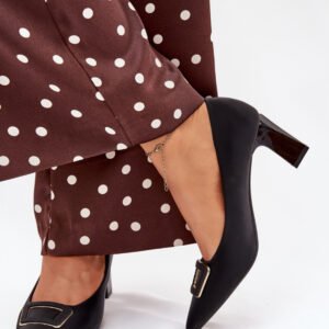 Czółenka damskie z eko skóry, osadzone na obcasie w formie słupka, to elegancka propozycja na różne okazje. Z przodu ozdobna klamra dodaje im wyjątkowego charakteru, a noski w szpic optycznie wysmuklają nogi. Idealne do sukienek, spódnic czy spodni, te czółenka łączą styl, wygodę i nowoczesny wygląd, tworząc ponadczasową klasykę w Twojej garderobie.