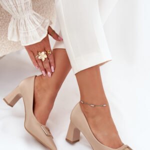 Czółenka damskie z eko skóry, osadzone na obcasie w formie słupka, to elegancka propozycja na różne okazje. Z przodu ozdobna klamra dodaje im wyjątkowego charakteru, a noski w szpic optycznie wysmuklają nogi. Idealne do sukienek, spódnic czy spodni, te czółenka łączą styl, wygodę i nowoczesny wygląd, tworząc ponadczasową klasykę w Twojej garderobie.