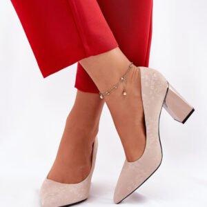 Eleganckie czółenka damskie od marki Vinceza. Wykonane z wysokiej jakości eko skóry. Osadzone na stabilnym słupkowym obcasie, zapewniają komfort i elegancję przez cały dzień. Noski w szpic dodają im smukłego wyglądu, a cholewka z subtelnym tłoczeniem w formie róż wprowadza odrobinę romantyzmu do klasycznego designu. Skórzana wkładka gwarantuje wygodę, czyniąc te czółenka idealnym wyborem na eleganckie wyjścia oraz formalne okazje.