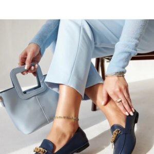 Eleganckie granatowe mokasyny Scaletta to idealne obuwie na każdą okazję. Ich niski design oraz wykonanie z tworzywa sztucznego sprawiają, że są niezwykle lekkie i przewiewne. Migdałkowy nosek dodaje im nowoczesnego charakteru, a ozdobiony łańcuszkiem dodaje im elegancji. Doskonale sprawdzą się zarówno na co dzień, jak i na specjalne okazje. Materiał zewnętrzny to skóra ekologiczna, a podeszwa wykonana jest z trwałego tworzywa sztucznego w kolorze czarnym. Mokasyny posiadają zapięcie typu wsuwane, co sprawia, że są łatwe w zakładaniu i wygodne w użytkowaniu. To obuwie z kolekcji na lato, które z pewnością będzie doskonałym uzupełnieniem Twojej garderoby.