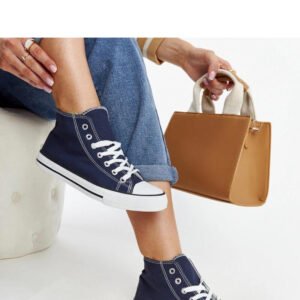 Granatowe wysokie trampki Eliska to doskonały wybór na letnie dni. Ich nowoczesny design w połączeniu z wygodą i przystępną ceną sprawiają, że są idealnym obuwiem na letnie spacery czy spotkania ze znajomymi. Trampki wykonane są z wysokiej jakości gumy, co zapewnia trwałość i komfort noszenia. Sznurowane z okrągłym nosem gwarantują stabilność podczas chodzenia. Te letnie trampki będą doskonałym uzupełnieniem letniej garderoby dla osób ceniących modny i wygodny styl. Materiał zewnętrzny to tkanina, wysokość buta jest wysoka, ocieplenie nie występuje, a podeszwa wykonana jest z gumy w kolorze brązowym. Zapięcie na sznurowane. Idealne na lato!