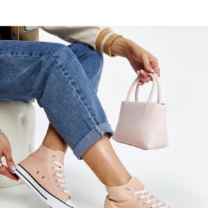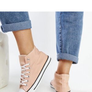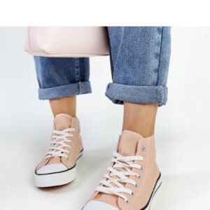 Jasnoróżowe wysokie trampki Eliska to doskonały wybór na letnie dni. Ich elegancki design z okrągłym nosem sprawia, że są nie tylko stylowe, ale także wygodne. Wykonane z lekkiej gumy trampki są idealne na ciepłe dni, zapewniając przewiewność i komfort noszenia. Sznurowane zapinanie pozwala na idealne dopasowanie do stopy, a wysoka cholewka dodaje im charakteru streetwearowego. Te niedrogie trampki będą świetnym dodatkiem do letniej garderoby każdej modnej kobiety. Materiał zewnętrzny: Tkanina Wysokość: Wysokie Ocieplenie: Brak Materiał podeszwy: Guma Kolor podeszwy: Brązowy Zapięcie: Sznurowane Kolekcja: Lato