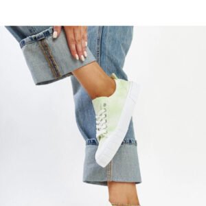 Jasnozielone trampki Jerina Adidas to niezbędny element garderoby dla młodego pokolenia. Ich innowacyjny design z zaokrąglonym noskiem sprawia, że nie tylko wyglądają stylowo, ale także są wyjątkowo wygodne. Wykonane z gumy trampki są lekkie i wyposażone w sznurowadła, zapewniając idealne dopasowanie do stopy. To doskonały wybór dla tych, którzy cenią sobie wygodę i modny wygląd jednocześnie. Materiał zewnętrzny: Tkanina Ocieplenie: Brak Materiał podeszwy: Guma Kolor podeszwy: Biały Zapięcie: Sznurowane Kolekcja: Lato/Wiosna