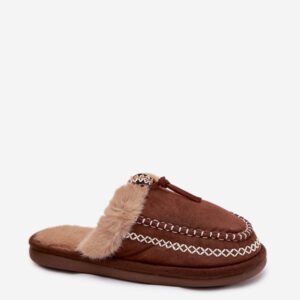 Kapcie damskie wykonane z eko zamszu. Subtelny haft zdobiący cholewkę nadaje modelowi stylowego akcentu, dzięki czemu kapcie wyróżniają się na tle klasycznych domowych pantofli. Idealne zarówno do relaksu w domowym zaciszu, jak i jako obuwie, które świetnie sprawdzi się również w roli drobnego prezentu.