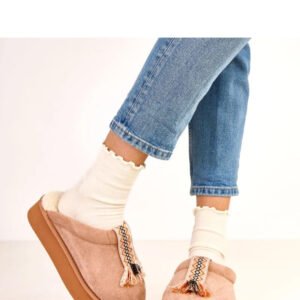 Ciemnobeżowe zabudowane kapcie z kolorową wstawką Sarah to idealny wybór dla osób, które cenią wygodę, ciepło i modny wygląd także w domowym zaciszu. Wykonane z przyjemnego w dotyku materiału, zapewniają komfort noszenia przez cały dzień. Ich ciemnobeżowy kolor jest wyjątkowo uniwersalny i łatwo dopasowuje się do każdego domowego stroju, a kolorowa wstawka nadaje kapciom oryginalny i stylowy charakter. Zabudowana konstrukcja gwarantuje stabilność stopy i skutecznie chroni ją przed chłodem podłogi. Prezentowane kapcie damskie z kategorii kapcie domowe sprawdzą się zarówno jesienią, zimą, jak i w chłodniejsze wiosenne wieczory. Dzięki wygodnemu, zabudowanemu fasonowi, ciemnobeżowe zabudowane kapcie z kolorową wstawką Sarah utrzymują stopę we właściwym położeniu i minimalizują ryzyko poślizgnięcia. Miękka wyściółka otula stopę, zapewniając uczucie relaksu już od pierwszego założenia. To doskonały wybór dla osób poszukujących kapci, które łączą funkcjonalność z estetycznym wyglądem. Choć jest to marka niezdefiniowana, wykonanie oraz dbałość o detale sprawiają, że te kapcie dorównują produktom znanych producentów. Stonowany kolor w połączeniu z subtelną, kolorową wstawką sprawia, że kapcie prezentują się wyjątkowo elegancko. Będą idealne do codziennego użytkowania, a także jako praktyczny i trafiony prezent dla bliskiej osoby. Ciemnobeżowe kapcie Sarah to propozycja dla tych, którzy chcą połączyć domowy komfort z modnym designem. Wybierając ciemnobeżowe zabudowane kapcie z kolorową wstawką Sarah, inwestujesz w wygodę na co dzień. Sprawdzą się w mieszkaniu, domu jednorodzinnym, a także podczas wyjazdów, łatwo je spakować do torby czy walizki. Jeśli szukasz solidnych, estetycznych i praktycznych kapci domowych, ten model spełni Twoje oczekiwania. Postaw na ciepło, miękkość i styl w jednym produkcie.