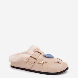 Kapcie damskie wykonane z eko zamszu to przytulny i stylowy model idealny na chłodniejsze dni. Miękkie futerko wewnątrz zapewnia ciepło i komfort noszenia. Urocze przypinki dodają im wyjątkowego charakteru, a pasek z klamrą stanowi zarówno dekoracyjny akcent, jak i element poprawiający dopasowanie. To świetne kapcie do domowego relaksu ciepłe, wygodne i pełne uroku. Doskonale sprawdzą się również jako prezent.