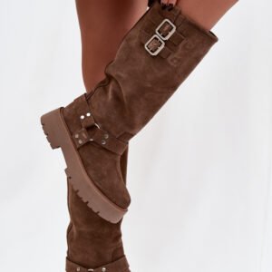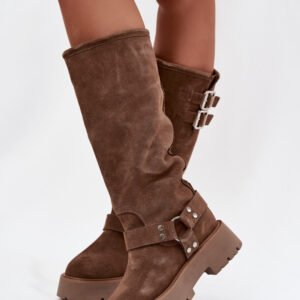 Stylowe kozaki damskie z naturalnego zamszu marki Big Star. Model ocieplany doskonale sprawdzi się w chłodniejsze dni, zapewniając komfort i ciepło. Buty są wsuwane, co ułatwia zakładanie, a ozdobne klamry i metalowe kółko dodają im charakteru i nieco rockowego stylu. Osadzone na stabilnej platformie, gwarantują pewność kroku i modny wygląd. To idealny wybór dla kobiet, które lubią wyróżniać się stylem, nie rezygnując z wygody i funkcjonalności.