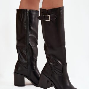 Kozaki damskie wykonane z eko skóry to elegancka i praktyczna propozycja na chłodniejsze dni. Model osadzony na stabilnym obcasie typu słupek zapewnia wygodę i pewność kroku, a zaokrąglone noski nadają całości klasycznego charakteru. Buty zapinane są na zamek, co ułatwia ich zakładanie i zdejmowanie. Na górze cholewki znajduje się ozdobna klamra, która dodaje im stylowego akcentu. Wnętrze ocieplone pianką pokrytą materiałem gwarantuje komfort i ciepło. To uniwersalne kozaki, które doskonale sprawdzą się zarówno w codziennych, jak i eleganckich stylizacjach.
