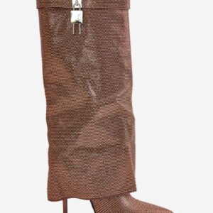 Wyjątkowe kozaki wsuwane dla kobiet pragnących się wyróżnić! Wykonane z materiału, posiadają wywiniętą cholewkę ozdobioną dżetami przypominającymi cyrkonie. Osadzone na obcasie typu szpilka. Wnętrze jest ocieplane przyjemnym w dotyku kocem obuwniczym. Zapiętek jest usztywniany, co gwarantuje odpowiednią stabilizację stopy. Model ten z pewnością doda blasku Twojej stylizacji!