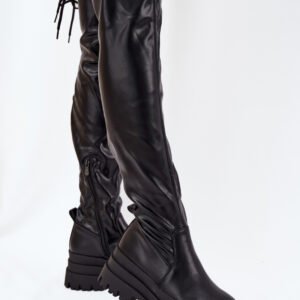 Kozaki za kolano osadzone na masywnej platformie to świetny wybór na zimowe dni, łączący styl i wygodę. Model wsuwany, z dodatkowym suwakiem na dole cholewki, zapewnia łatwe zakładanie i dopasowanie. Na górze cholewki ściągacz, Ocieplone wyłącznie na poziomie stopy, gwarantują ciepło i komfort. Ich modny fason doda charakteru każdej stylizacji, sprawiając, że będą doskonałym uzupełnieniem zimowo-jesiennych outfitów.