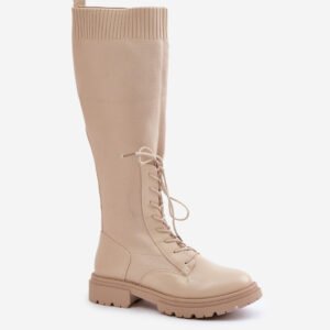 Damskie kozaki wykonane z połączenia ekologicznej skóry i materiału tekstylnego. Model wyróżnia się zaokrąglonymi noskami, które gwarantują komfort noszenia. Wnętrze butów jest ocieplone kocem obuwniczym, ograniczonym do części stopy. Elastyczna cholewka ze sznurowaniem nowoczesny, stylowy charakter.