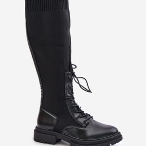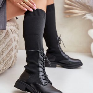 Damskie kozaki wykonane z połączenia ekologicznej skóry i materiału tekstylnego. Model wyróżnia się zaokrąglonymi noskami, które gwarantują komfort noszenia. Wnętrze butów jest ocieplone kocem obuwniczym, ograniczonym do części stopy. Elastyczna cholewka ze sznurowaniem nowoczesny, stylowy charakter.