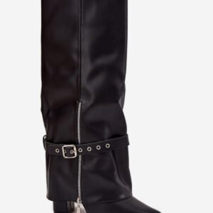 Wsuwane kozaki damskie przed kolano to elegancka i stylowa propozycja, która łączy klasykę z nowoczesnym akcentem. Model ze szpiczastymi noskami i obcasem typu słupek subtelnie wysmukla sylwetkę, a cholewka nachodząca na obcas nadaje całości wyjątkowego charakteru. Dodatkowy pasek z ozdobną klamrą można ściągnąć lub dowolnie ustawić, zmieniając styl butów i dopasowując je do różnych stylizacji. Idealne do sukienek, spódnic, jak i eleganckich zestawów casualowych, wprowadzają modny, kobiecy akcent do każdej garderoby.