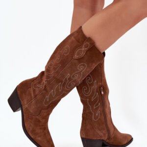Kozaki damskie w stylu kowbojek to niezwykle modne obuwie na sezon jesienno-zimowy. Wykonane z naturalnego zamszu. Stabilny, niski obcas sprawia, że są one wygodne i idealne do noszenia na co dzień. Model wsuwany z dodatkowym zapięciem na suwak ułatwia zakładanie butów. Cholewka z przeszyciami, co dodaje im charakterystycznego, kowbojskiego stylu. Stylowy fason sprawia, że te kozaki będą doskonałym wyborem do różnych stylizacji, zarówno na co dzień, jak i na specjalne okazje.