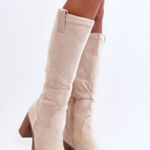Kozaki damskie zostały wykonane z eko zamszu. Osadzone na obcasie w postaci słupka. Zapinane na suwak z boku. Dodatkowo zapiętek w tym obuwiu został usztywniony. Miękka wkładka zapewni komfortowe użytkowanie. Model ten świetnie sprawdzi się w wielu stylizacjach!