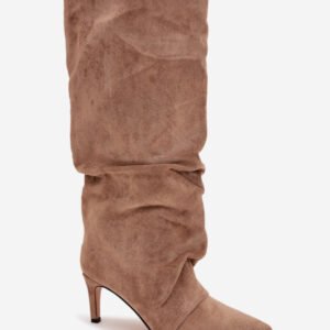 Kozaki damskie wykonane z miękkiego eko zamszu to elegancka i kobieca propozycja na chłodniejsze dni. Model na smukłej szpilce pięknie podkreśla nogi, a szpiczasty nosek dodaje szyku i optycznie wysmukla sylwetkę. Marszczona, luźna cholewka nadaje całości modnego charakteru. Buty są wsuwane i ocieplane kocem obuwniczym, dzięki czemu zapewniają wygodę oraz komfort cieplny. To bardzo stylowy fason, który doskonale dopełni zarówno eleganckie sukienki, jak i casualowe zestawy z jeansami, tworząc modny i kobiecy look.