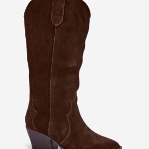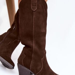 Kozaki kowbojki wykonane z wysokiej jakości naturalnego zamszu to idealna propozycja dla kobiet, które cenią połączenie elegancji i modnego charakteru. Ich wyjątkowy design inspirowany stylem westernowym sprawia, że stanowią efektowny element każdej stylizacji. Model wsuwany oraz zapiany na suwak w dolnej części cholewki, ułatwia zakładanie i zdejmowanie, zachowując przy tym zgrabny fason. Osadzone na stabilnym, ściętym obcasie typu słupek, zapewniają wygodę podczas chodzenia, a jednocześnie delikatnie wysmuklają nogi i dodają sylwetce lekkości. Szpiczaste noski podkreślają kobiecy charakter obuwia, nadając im eleganckiego wyrazu. Wnętrze kozaków zostało ocieplone miękkim kocem obuwniczym, który gwarantuje komfort termiczny nawet w chłodniejsze dni. Doskonale sprawdzą się w stylizacjach z sukienkami, spódnicami i spodniami typu skinny.