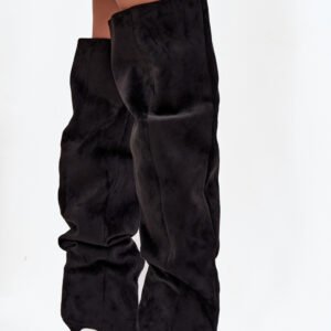 Kozaki damskie wykonane z eko zamszu. Model został osadzony na niskiej szpilce. Charakterystyczną cechą butów jest szeroka cholewka, która nie tylko nadaje im modnego wyglądu, ale również sprawia, że kozaki są wygodne w noszeniu i łatwe do dopasowania do każdej nogi. Wsuwany fason ułatwia szybkie zakładanie i zdejmowanie, czyniąc obuwie praktycznym w codziennym użytkowaniu. To kozaki, które doskonale sprawdzą się zarówno w zestawieniach casualowych, jak i bardziej eleganckich stylizacjach, dodając im wyrafinowanego charakteru.