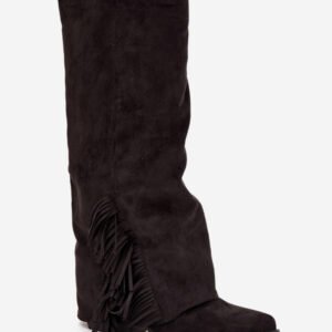 Wsuwane kozaki kowbojki z eko zamszu, osadzone na obcasie słupku, to połączenie wygody i stylu. Szpiczaste noski dodają elegancji, a cholewka ozdobiona frędzlami wprowadza lekki, boho akcent. Idealne do casualowych stylizacji, świetnie komponują się z sukienkami, spódnicami i spodniami, nadając każdej kreacji odrobinę kowbojskiego uroku.