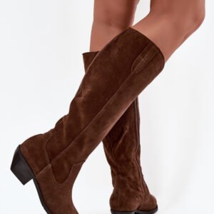 Kozaki kowbojki damskie wykonane z wysokiej jakości naturalnego zamszu to połączenie ponadczasowego stylu i wygody. Charakterystyczne szpiczaste noski nadają kobiecego, stylowego wyrazu, podkreślając sylwetkę i dodając im lekkości. Wnętrze zostało ocieplone filcem, co zapewnia komfort termiczny i wygodę podczas chłodniejszych dni. Dzięki temu kozaki doskonale sprawdzą się zarówno w codziennych stylizacjach, jak i podczas wyjątkowych okazji. To model inspirowany klasycznym stylem westernowym, który świetnie prezentuje się w połączeniu z sukienkami boho, spódnicami czy dopasowanymi jeansami. Idealny wybór dla kobiet ceniących modę, komfort i niepowtarzalny charakter obuwia.