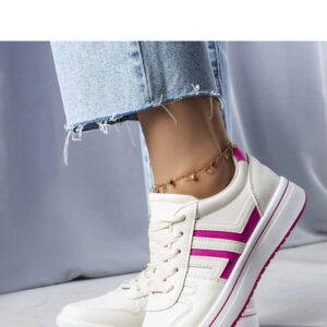Olympia to kremowe sneakersy z uroczymi różowymi wstawkami, które dodają im delikatności i kobiecego uroku. Wykonane z wysokiej jakości materiałów, zapewniają komfort noszenia i stylowy wygląd. Mają zapięcie na sznurowadła, które umożliwia idealne dopasowanie do stopy. Idealne na lato, gdyż nie posiadają ocieplenia, a ich czarna gumowa podeszwa gwarantuje stabilność i wygodę podczas chodzenia. Olympia to doskonały wybór dla tych, którzy cenią sobie wygodę i modny design w jednym.