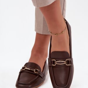Damskie loafersy wykonane z eko skóry. Zaokrąglone noski nadają im klasycznego charakteru, a ozdobny detal na pasku dodaje subtelnej elegancji. Miękka wkładka zapewnia komfort noszenia, dzięki czemu buty świetnie sprawdzą się zarówno w pracy, jak i casualowych stylizacjach.
