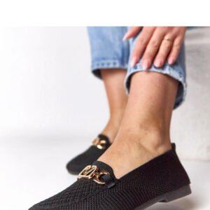 Mokasyny ze złotą ozdobą to stylowe i wygodne obuwie idealne na co dzień. Wykonane z wysokiej jakości tkaniny, są lekkie i komfortowe w noszeniu. Okrągły nosek zapewnia swobodę palców oraz wygodę przez cały dzień. Model niski, wsuwany, co sprawia, że mokasyny są praktyczne i łatwe do zakładania. Wkładka z tkaniny zwiększa komfort użytkowania. Elegancka złota ozdoba na przodzie dodaje całości szyku i modnego charakteru. Świetnie sprawdzą się zarówno w codziennych stylizacjach, jak i w bardziej eleganckich zestawach.