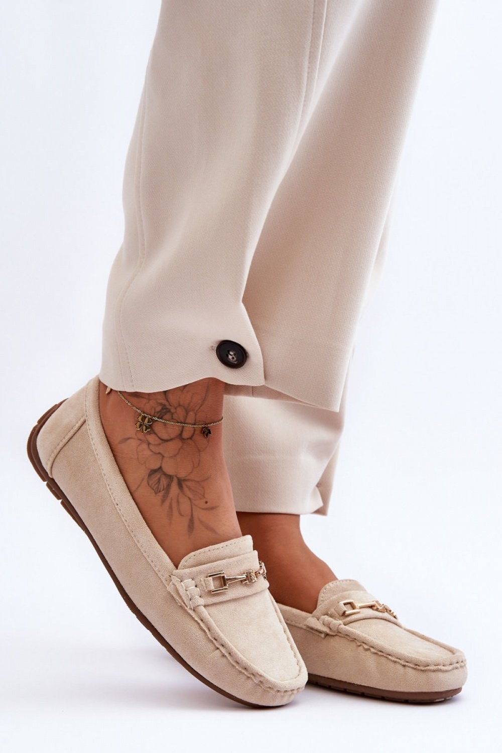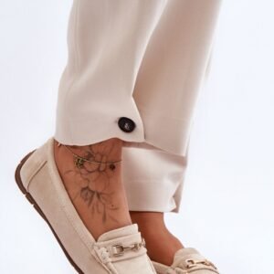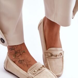Damskie mokasyny są idealne na wiele okazji! Zostały wykonane z miłego w dotyku eko zamszu. Model ten posiada na przodzie ozdobę z tworzywa sztucznego. Mokasyny osadzono na antypoślizgowej podeszwie. Miękka wkładka z eko skóry zapewni komfort podczas użytkowania obuwia. Dodatkowo jest delikatnie perforowana.