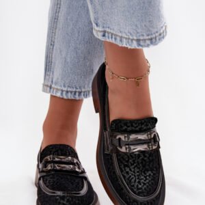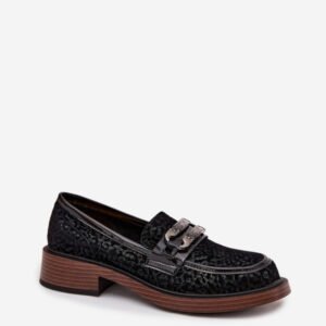 Eleganckie mokasyny damskie wykonane z naturalnego zamszu. Miękka w dotyku skóra gwarantuje komfort noszenia, a staranne wykończenie podkreśla ich ponadczasowy charakter. Osadzone na stabilnym obcasie w formie klocka, zapewniają wygodę przez cały dzień i delikatnie podkreślają sylwetkę. Zaokrąglone noski. Umieszczony z przodu ozdobny detal z kryształkami dodaje im oryginalności. To model, który doskonale sprawdzi się zarówno w codziennych stylizacjach, jak i podczas wyjątkowych okazji, stanowiąc stylowe uzupełnienie kobiecej garderoby.