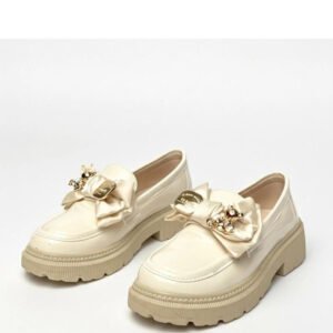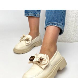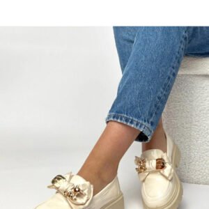 Mokasyny z kokardą i metalową ozdobą to stylowe obuwie, które łączy elegancję z codziennym komfortem. Wykonane z wysokiej jakości skóry ekologicznej, prezentują się estetycznie i są przyjemne w użytkowaniu. Okrągły nosek zapewnia wygodę oraz swobodę dla palców. Model wsuwany, idealny na co dzień szybki i wygodny do zakładania. Wkładka ze skóry ekologicznej zwiększa komfort noszenia. Delikatna kokarda w połączeniu z metalową ozdobą nadaje mokasynom kobiecego, eleganckiego charakteru. Obcas o wysokości 5 cm subtelnie podnosi sylwetkę, jednocześnie zachowując stabilność i wygodę.