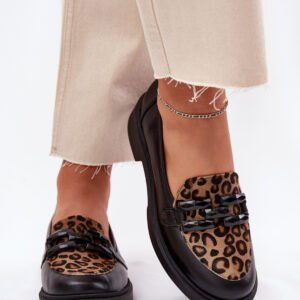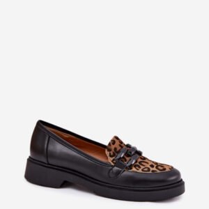 Damskie mokasyny z naturalnej skóry to elegancka i komfortowa propozycja na co dzień. Osadzone na płaskim obcasie, zapewniają wygodę i stabilność przez cały dzień. Zaokrąglone noski dodają subtelnego uroku, a ozdoba z przodu w połączeniu z modnym panterkowym wzorem nadają butom charakteru. Miękka wkładka gwarantuje komfort, sprawiając, że te mokasyny będą doskonałym wyborem do casualowych stylizacji.