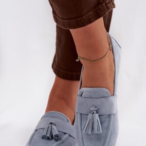 Mokasyny damskie wykonane z eko zamszu to wygodna i stylowa propozycja na co dzień. Płaska podeszwa i miękka wkładka zapewnia komfort noszenia, a klasyczny fason sprawia, że model jest uniwersalny i łatwy do stylizacji. Z przodu znajduje się paseczek ozdobiony frędzlami, który dodaje obuwiu subtelnego, casualowego charakteru. Mokasyny doskonale sprawdzą się w codziennych zestawach.