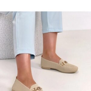 Stylowe mokasyny ze złotą ozdobą na przodzie to doskonałe połączenie wygody i subtelnej elegancji. Wykonane z wysokiej jakości tkaniny, prezentują się lekko i nowocześnie, a jednocześnie zapewniają komfort podczas codziennego użytkowania. Model posiada okrągły nosek, który gwarantuje wygodę oraz naturalne ułożenie palców. Niska cholewka sprawia, że buty są uniwersalne i świetnie komponują się zarówno z casualowymi stylizacjami, jak i bardziej eleganckimi zestawami. Obcas o wysokości 2 cm delikatnie unosi sylwetkę, zapewniając stabilność i wygodę przez cały dzień. Wsuwana konstrukcja umożliwia szybkie i bezproblemowe zakładanie. Wkładka wykonana z tkaniny zwiększa komfort noszenia i wspiera odpowiednią cyrkulację powietrza. To idealny wybór dla kobiet, które cenią klasyczny fason wzbogacony modnym, złotym detalem.