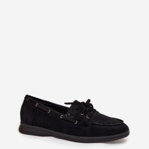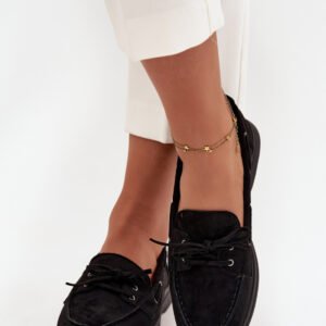 Mokasyny damskie wykonane z miękkiego eko zamszu to wygodna i stylowa propozycja na co dzień. Osadzone na płaskiej podeszwie gwarantują komfort, a zaokrąglone noski nadają im klasyczny charakter. Subtelny paseczek z przodu i wokół cholewki stanowi ciekawy detal, który podkreśla elegancki i ponadczasowy wygląd tego modelu. Doskonałe do codziennych stylizacji.