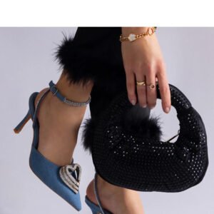 Niebieskie szpilki z odkrytą pięta zdobione cyrkoniami Isoda – Solea