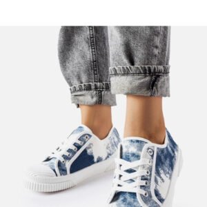 Niebieskie trampki z efektem sprania marki Clavet to doskonała propozycja dla kobiet, które kochają nowoczesny i letni styl. Ich niski krój sprawia, że są idealne na ciepłe dni, a sznurowane wiązanie pozwala na idealne dopasowanie do stopy. Wykonane z wysokiej jakości gumy, trampki są nie tylko wyjątkowo wygodne, ale także odporne na warunki atmosferyczne. Okrągły nosek dodaje im stylowego charakteru, a niebieski kolor z efektem sprania nadaje im modnego wyglądu. Damskie trampki Clavet to doskonałe połączenie komfortu, stylu i funkcjonalności. Idealne na letnie spacery i wypad na plażę!