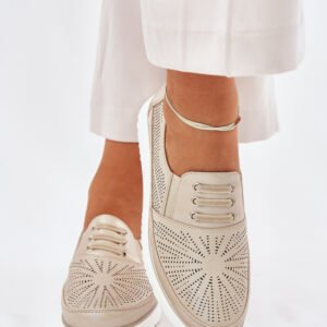 Ażurowe półbuty damskie z eko skóry, które łączą styl i komfort. Wsuwane, z gumkami imitującymi sznurówki, zapewniają łatwość zakładania i zdejmowania. Zaokrąglone noski. Miękka skórzana wkładka gwarantuje wygodę przez cały dzień. Lekkie i komfortowe, te buty będą doskonałym wyborem do codziennych stylizacji, łącząc modny wygląd z funkcjonalnością.