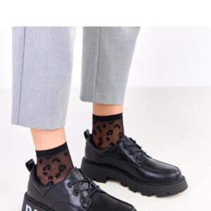 Półbuty na platformie z ozdobnym napisem to połączenie nowoczesnego designu i wygody. Wykonane z wysokiej jakości skóry ekologicznej, wyróżniają się okrągłym noskiem i efektownym detalem w postaci dekoracyjnego napisu, który nadaje im charakteru i modowego akcentu. Model posiada stabilną platformę o wysokości 4,5 cm, zapewniającą wygodę i lekko unosi sylwetkę. Sznurowane pozwala na idealne dopasowanie do stopy, a wkładka ze skóry naturalnej gwarantuje komfort i przewiewność przez cały dzień. Stylowe, nowoczesne i uniwersalne doskonałe zarówno do codziennych, casualowych stylizacji, jak i bardziej wyrazistych, miejskich looków.