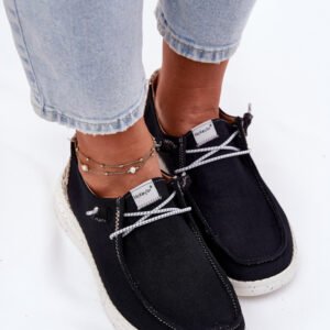 Damskie półbuty wykonane z materiału tekstylnego to połączenie wygody i stylu. Model wsuwany oraz dodatkowo posiada gumki imitujące sznurówki. Zaokrąglone noski zapewniają komfort, a miękka wkładka gwarantuje wygodę przez cały dzień. Idealne do codziennych stylizacji, te półbuty łączą funkcjonalność z modnym wyglądem.