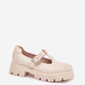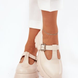Stylowe półbuty damskie wykonane z eko skóry to doskonałe połączenie klasyki i nowoczesnego wyglądu. Osadzone na płaskim obcasie i platformie, zapewniają komfort oraz stabilność na każdym kroku. Paseczek z klamrą na śródstopiu zwiększa dopasowanie i podtrzymuje stopę. Idealne na co dzień, do casualowych i bardziej eleganckich stylizacji!