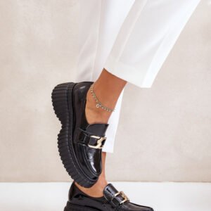 Damskie półbuty z naturalnej skóry to stylowy wybór na co dzień. Zaokrąglone noski i masywna platforma nadają im nowoczesny charakter. Przód zdobi dekoracyjny łańcuch, który dodaje wyrazistości. Dzięki elastycznej gumce pod językiem, buty idealnie dopasowują się do stopy, a usztywniany zapiętek zapewnia stabilność. Wykonane z dbałością o detale, te modne półbuty oferują nie tylko atrakcyjny wygląd, ale także wyjątkowy komfort dzięki wkładce z naturalnej skóry.