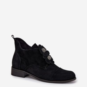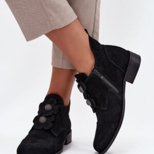 Eleganckie półbuty damskie z naturalnego zamszu to subtelna i stylowa propozycja na różne okazje. Wykonane z wysokiej jakości zamszu, charakteryzują się delikatnym, ale wyrazistym wyglądem, wzbogaconym o dwa dekoracyjne kwiatki, które dodają im wyjątkowego uroku. Zapinane na zamek, co zapewnia wygodę i łatwość w zakładaniu. Te półbuty idealnie komponują się z eleganckimi, jak i casualowymi stylizacjami, łącząc komfort z kobiecym, eleganckim wyglądem.