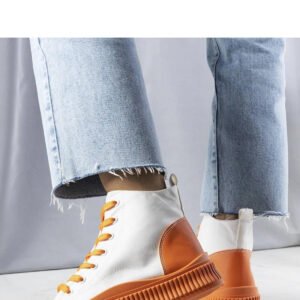 Pomarańczowe trampki na platformie Terri to idealna propozycja na nadchodzącą jesień/zimę. Wykonane z wysokiej jakości tkaniny, zapewniają wygodę i komfort noszenia. Zapięcie na sznurowadła ułatwia regulację dopasowania do stopy. Podeszwa wykonana z elastycznej gumy w pomarańczowym kolorze dodaje oryginalności i stylu. Doskonałe na co dzień, aby dodać odrobinę koloru do codziennych stylizacji.