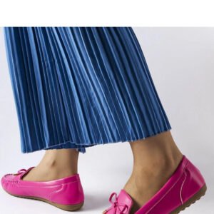 Różowe mokasyny z kokardką Via Foria to obuwie, które doskonale odzwierciedla najnowsze trendy. Ich szpicowaty nosek dodaje im elegancji, a wykonanie z gumy zapewnia wygodę i trwałość. Niski fason sprawia, że są idealne na letnie dni, kiedy chcemy czuć się komfortowo. Mokasyny te dedykowane są dla kobiet, a wsuwany model ułatwia zakładanie i zdejmowanie. Dodatkowo ozdobna kokardka nadaje im unikalnego charakteru, sprawiając że stają się jeszcze bardziej stylowe. Doskonały wybór dla modnych kobiet ceniących sobie komfort i oryginalność. Materiał zewnętrzny to skóra ekologiczna z zamkiem, a podeszwa wykonana jest z gumy w brązowym kolorze. Zapięcie na wsuwane ułatwia korzystanie z obuwia, a kolekcja dedykowana jest na lato.