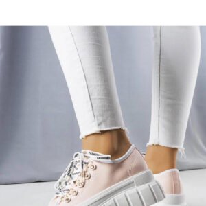 Różowe trampki na platformie Toni to idealna propozycja dla miłośniczek streetwearowego stylu. Wykonane z wysokiej jakości tkaniny, posiadają wygodną wkładkę z materiału włókienniczego oraz ozdobione są delikatnymi przeszyciami na cholewce sięgającej kostki. Trampki posiadają również gumową wstawkę na nosku oraz gruba podeszwę udekorowaną pionowymi żłobieniami. Zapięcie na płaskie logowane sznurowadła zapewniają dodatkowy komfort noszenia. Doskonale sprawdzą się w zestawieniu z modnymi jeansami i bluzą oversize. Numeracja standardowa, więc warto kierować się swoim rozmiarem podczas zakupu. Platforma trampki Toni są idealne na lato, nie posiadają ocieplenia, a biała guma na podeszwie dodaje im dodatkowego efektu.