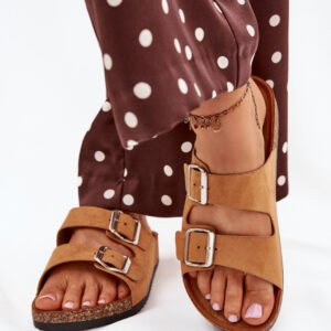 Klapki damskie z eko zamszu, osadzone na korkowej podeszwie, to wygodna i stylowa opcja na ciepłe dni. Dwa paski z klamrami pozwalają na idealne dopasowanie do stopy, a profilowana wkładka zapewnia komfort przez cały dzień. Doskonałe do codziennych stylizacji z sukienkami, spódnicami i spodniami.