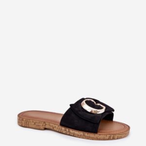 Płaskie klapki damskie z eko zamszu, które łączą komfort z subtelnym stylem. Z przodu ozdobiony złoty detal, który dodaje im elegancji i wyjątkowego charakteru. Idealne na ciepłe dni, te klapki doskonale komponują się z letnimi sukienkami, spódnicami czy spodniami, wprowadzając do każdej stylizacji lekkość.