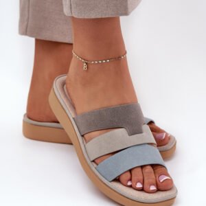 Klapki damskie z eko zamszu to stylowa i komfortowa propozycja na ciepłe dni. Osadzone na platformie. Trzy paseczki z przodu nadają im nowoczesnego charakteru. Miękka, skórzana wkładka z efektem poduszki zapewnia wygodę przez cały dzień, dbając o komfort stóp. Te klapki będą idealnym wyborem na letnie spacery!