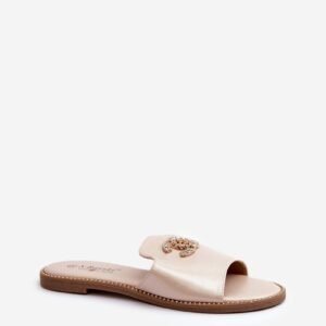 Eleganckie klapki damskie od S.Barski to połączenie stylu i komfortu. Osadzone na płaskim obcasie. Błyszczące, z efektowną ozdobą, która przyciąga wzrok. Miękka wkładka wykonana z naturalnej skóry gwarantuje wygodę noszenia. Model ten będzie doskonałym wyborem do wielu stylizacji!